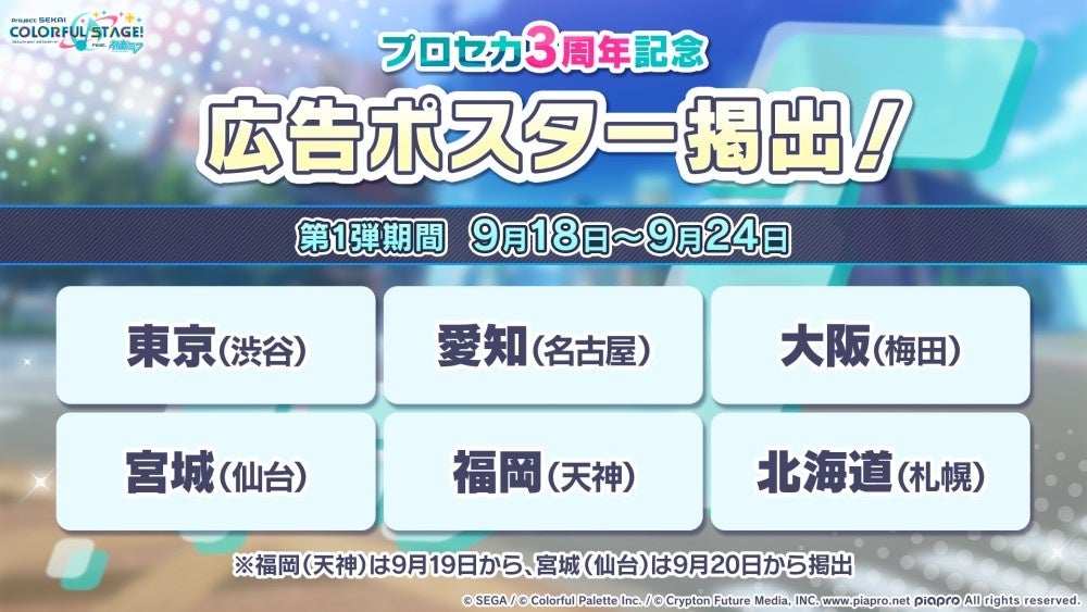 - 『プロジェクトセカイ』の広告ポスターが全国の主要都市に掲出される予定