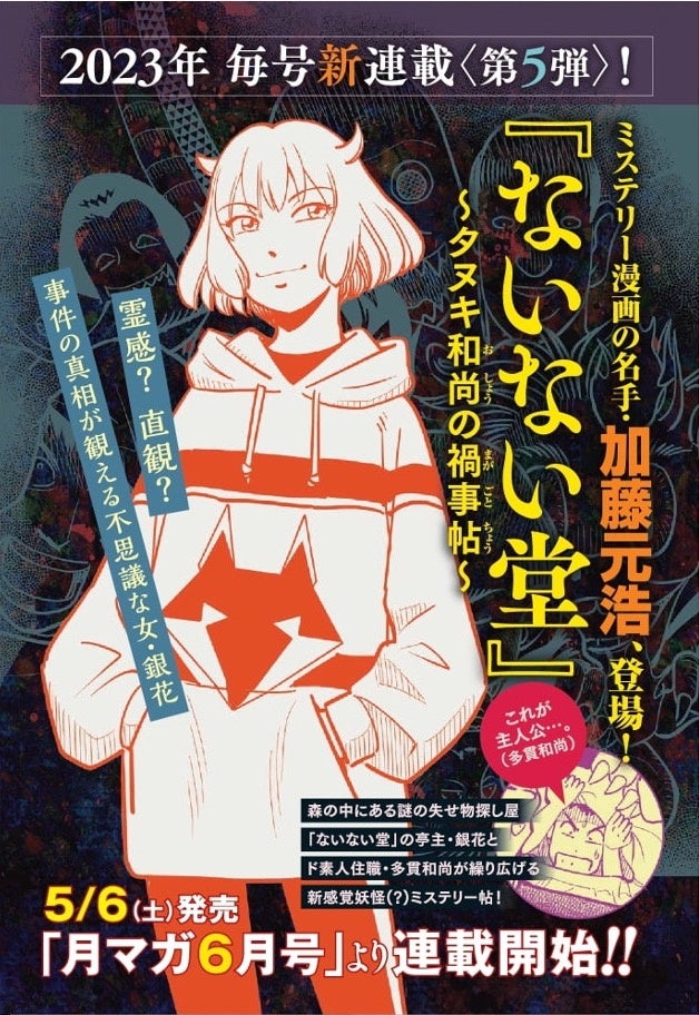 さらに5月6日(土)発売予定の6月号では、ミステリー漫画の名手・加藤元浩先生による新作『ないない堂 ~タヌキ和尚の禍事帖~』がスタート!月マガの新作開始はまだまだ続きます!これからもご期待ください!!