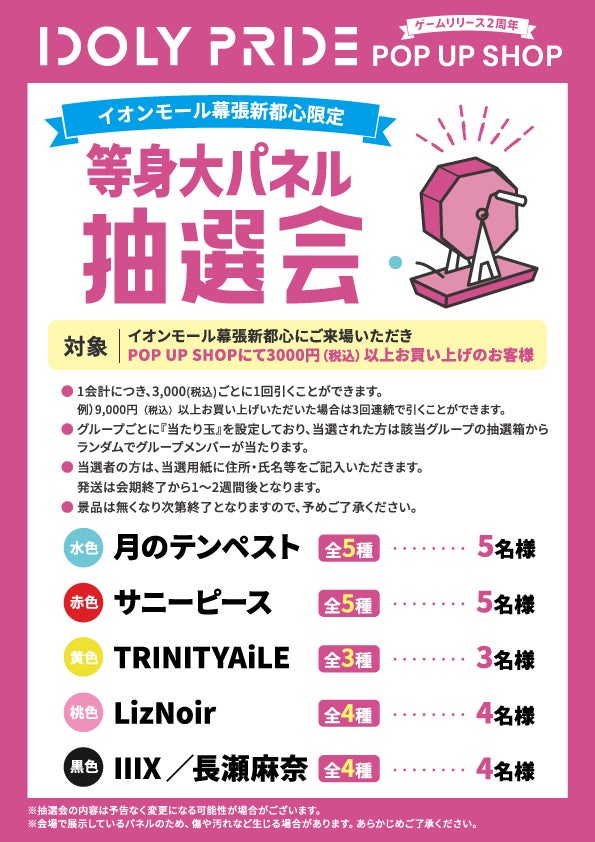 株式会社BeBlockは、アイドルマネジメントロールプレイングゲーム「IDOLY PRIDE」のゲームリリース2周年を記念して、イオンモール幕張新都心で「ゲームリリース2周年記念 IDOLY PRIDE POP UP SHOP」を開催します。
