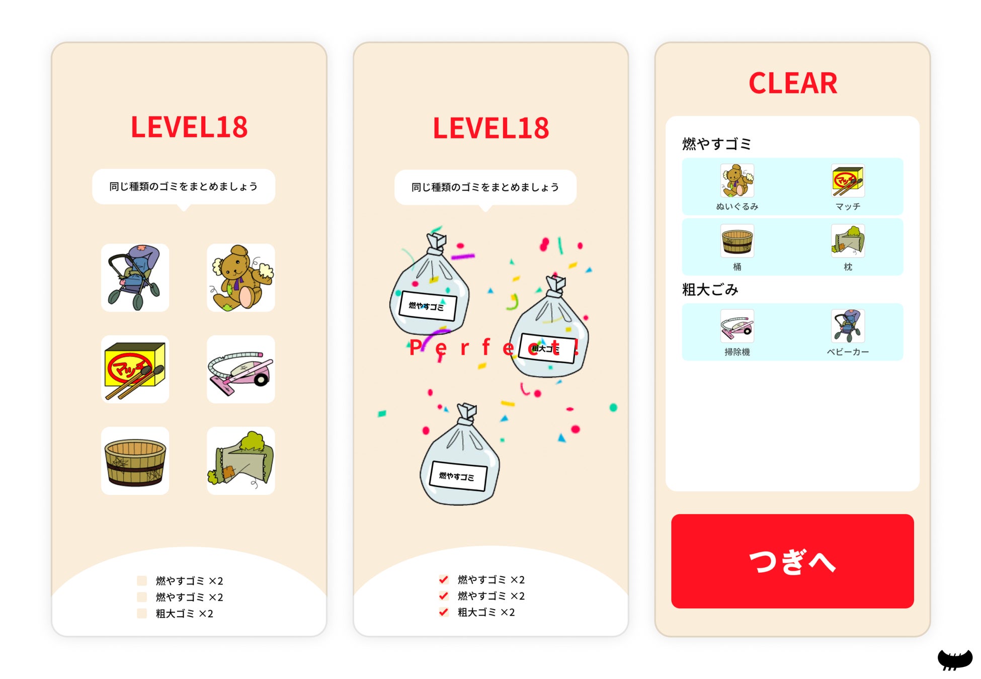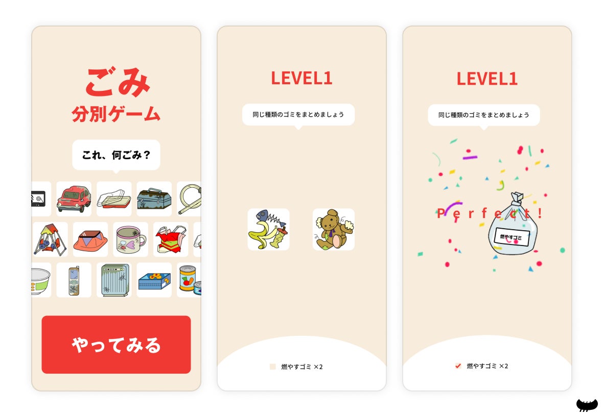 このゲームでは、ややこしいごみの分別を組み合わせゲームで学ぶことができます。