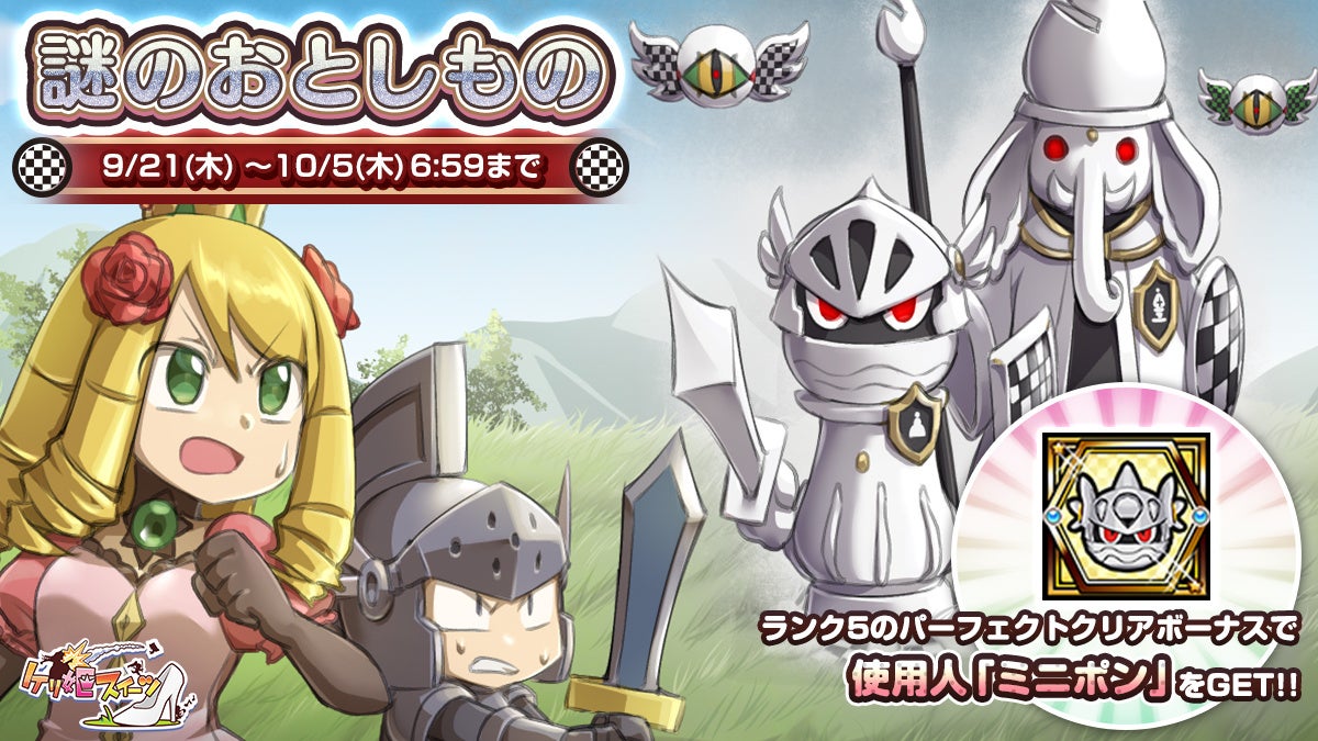 また、新イベント「謎のおとしもの」も開催され、高難易度ステージでボスと戦い、ランク5をパーフェクトクリアすると新たな使用人「ミニポン」が手に入ります。