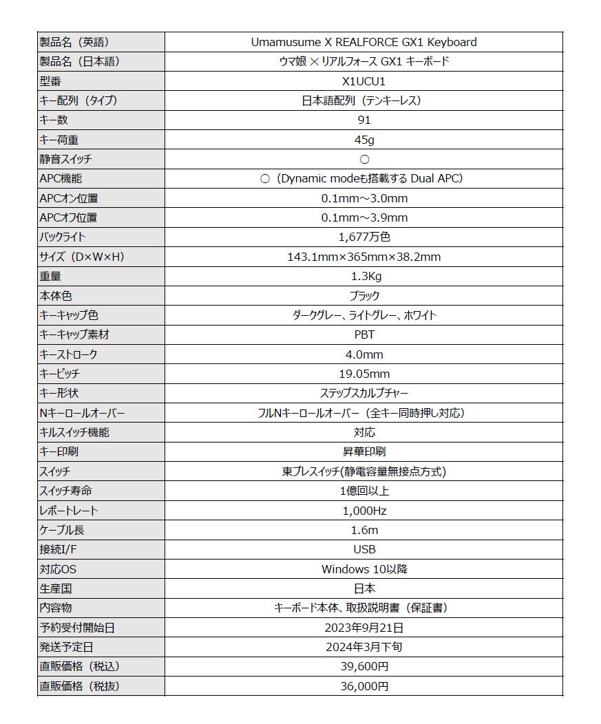 - 東プレ株式会社が「ウマ娘 ✕ REALFORCE GX1 Keyboard」の販売予約を開始
