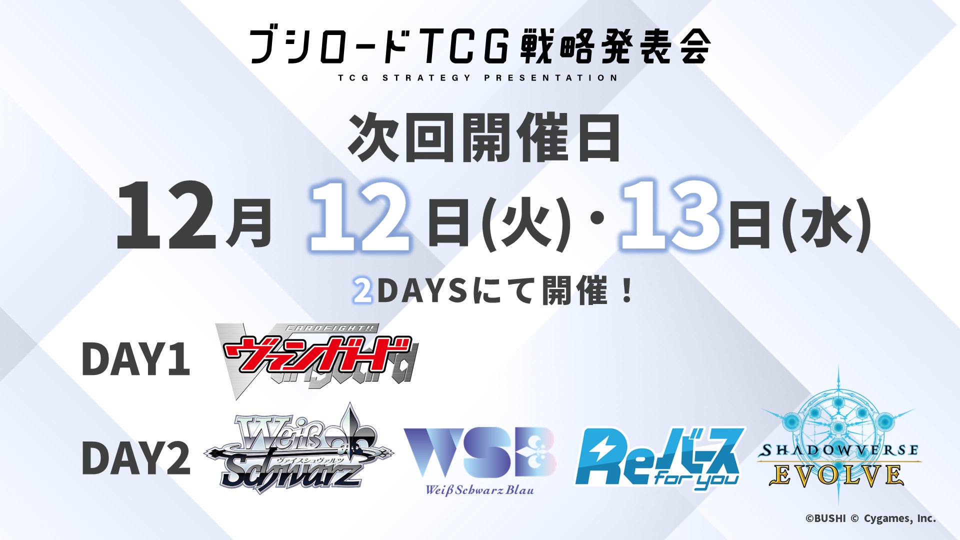 - ブシロードTCG戦略発表会の次回開催情報や各コンテンツの詳細も紹介