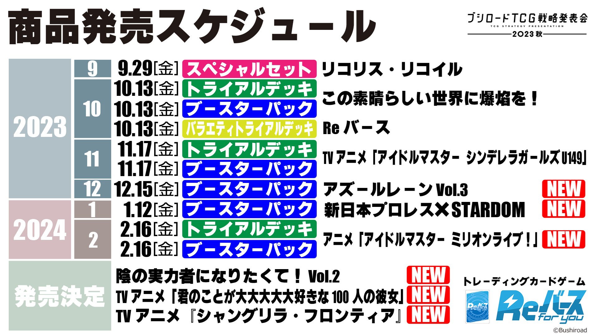 - 株式会社ブシロードは、2023年9月22日に『ブシロードTCG戦略発表会2023 秋』を開催