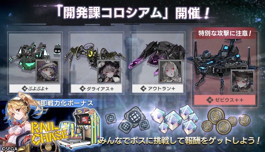 新キャスト「リッジレーサー(カソード)」と「レールチェイス(アノード)」も登場し、新キャストピックアップガチャも同時に開催されます。
