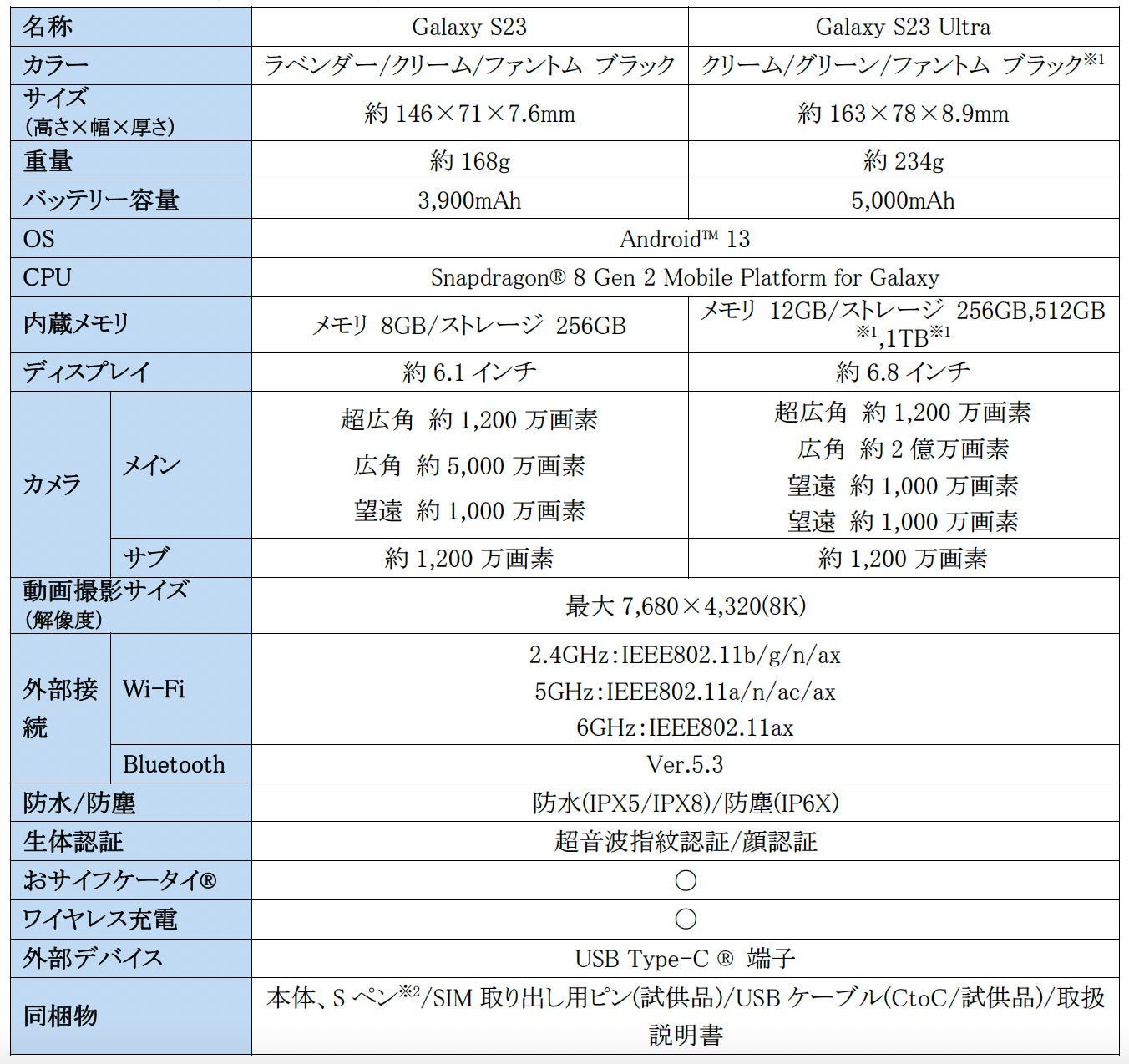 ※2 Sペンが付属するのは「Galaxy S23 Ultra」のみとなります。