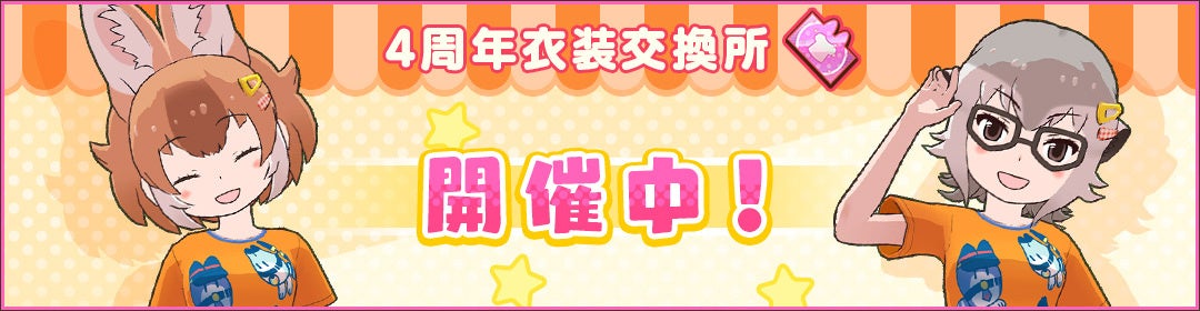 - 「4周年ハッピーラッキーTシャツ」入手可能な「4周年衣装交換所」開催