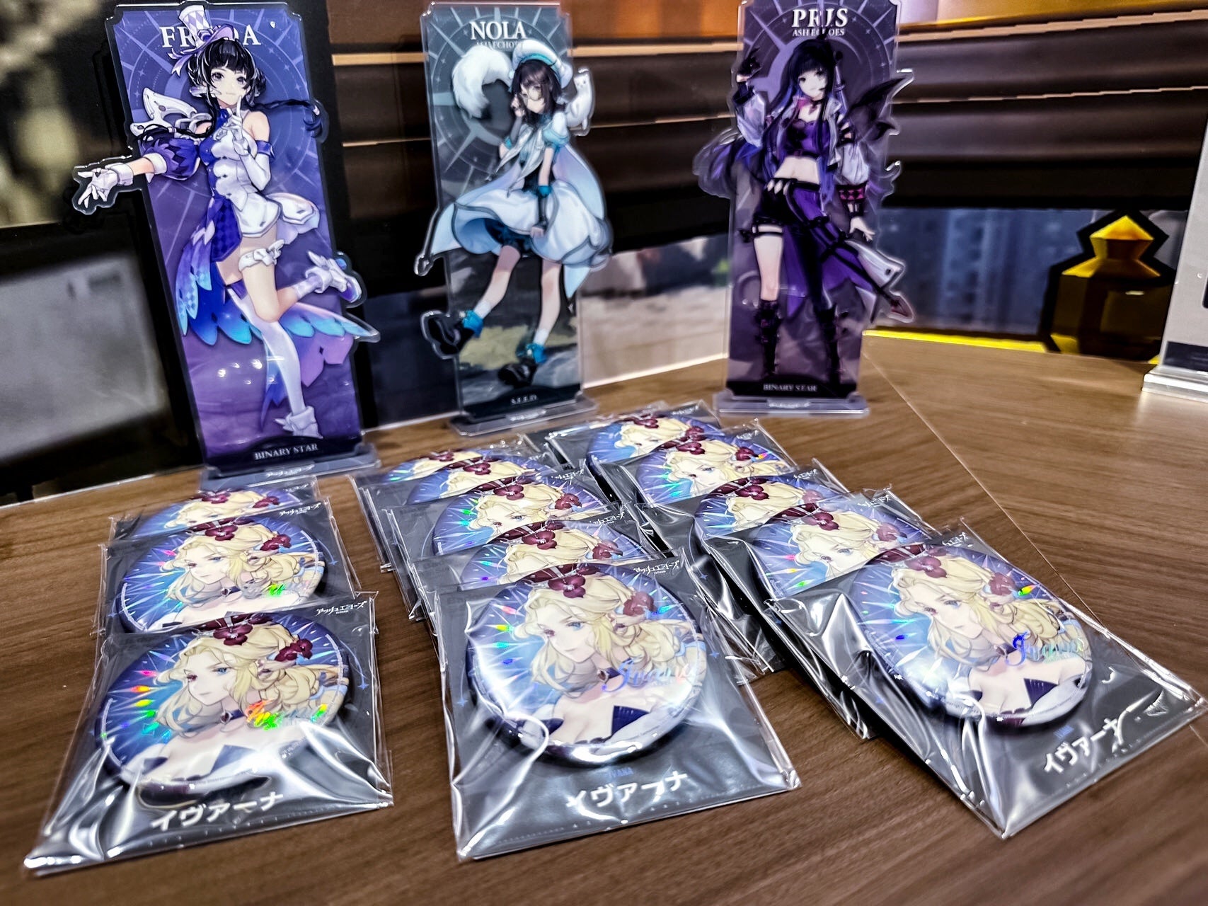 洗練されたデザインの青を基調としたブースでは、美しいキャラクターデザインが堪能できるパネルや試遊台が用意されています。