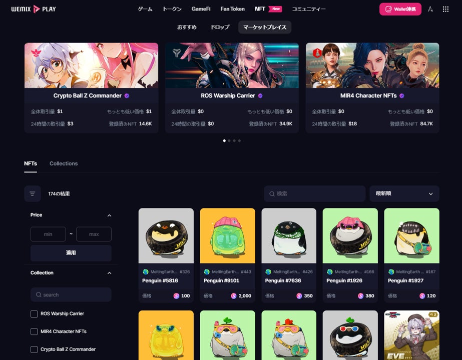 - WEMADEが「WEMIX PLAY」のNFTマーケットプレイスをリニューアルオープン