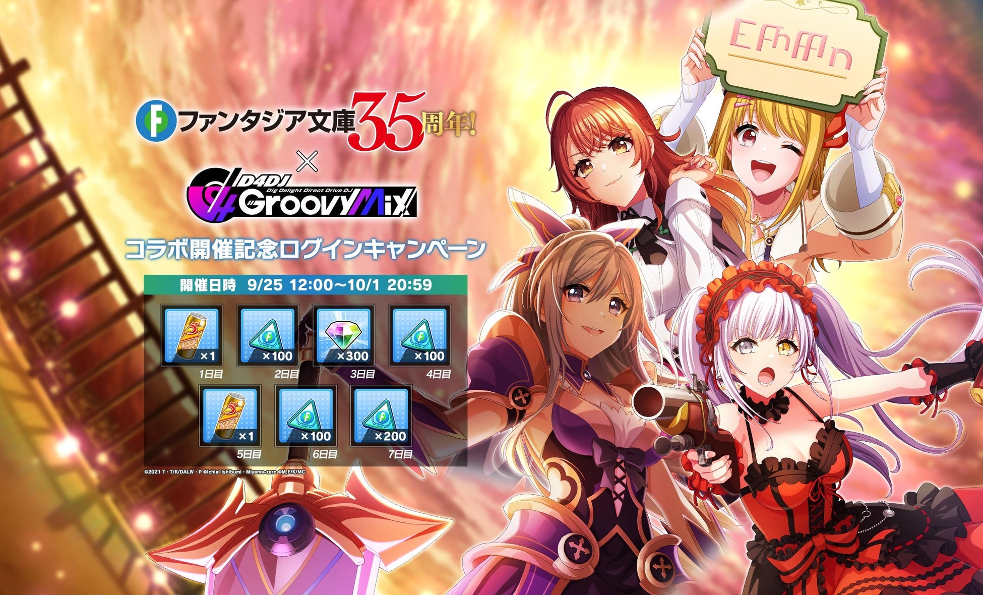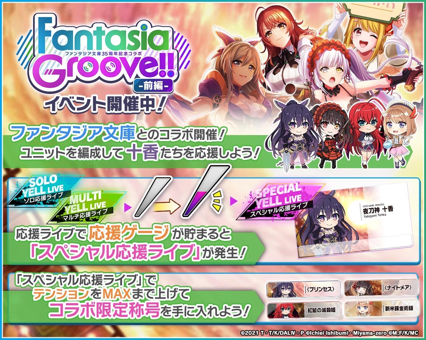 • 株式会社ブシロードと株式会社DONUTSが共同開発したスマートフォン向けリズムゲーム「D4DJ Groovy Mix」にて、「ファンタジア文庫」とのコラボイベント&ガチャ「Fantasia Groove!! 前編」を開催中