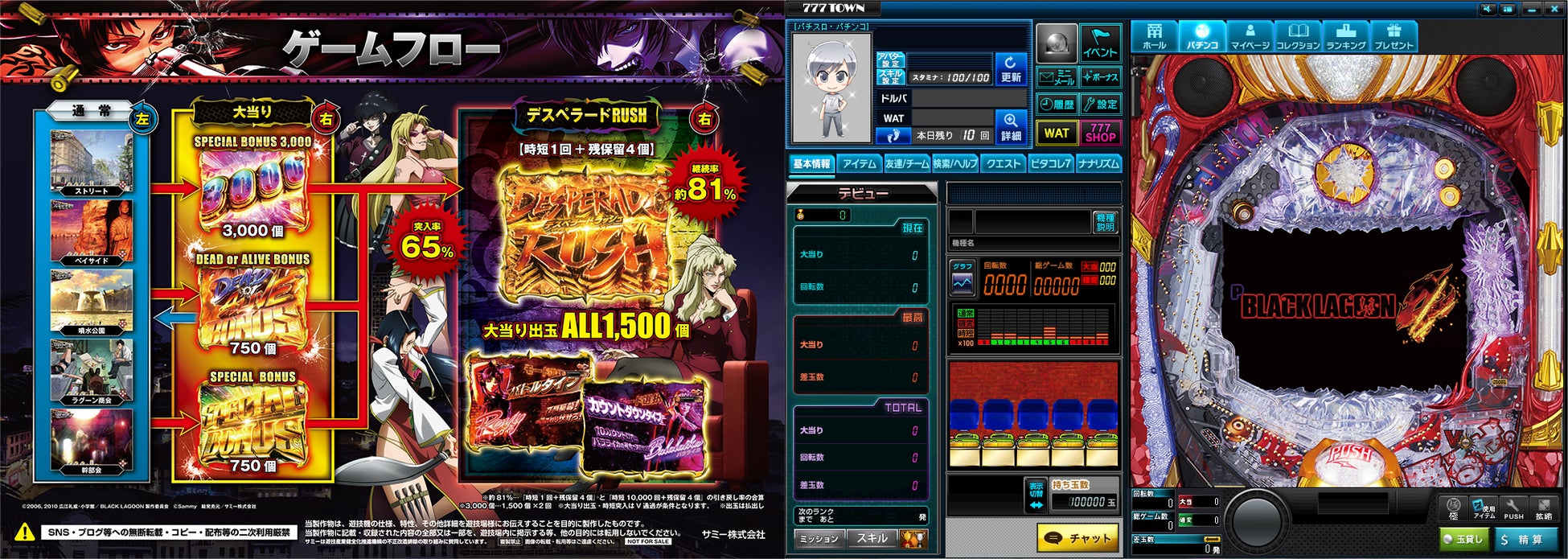 - サミーネットワークスが運営する「777TOWN.net」で、新しいゲーム「Pブラックラグーン4」を配信開始