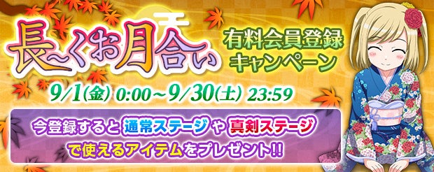 - 9月1日から9月30日までの期間中に有料会員登録すると、ゲーム内アイテムがプレゼントされます