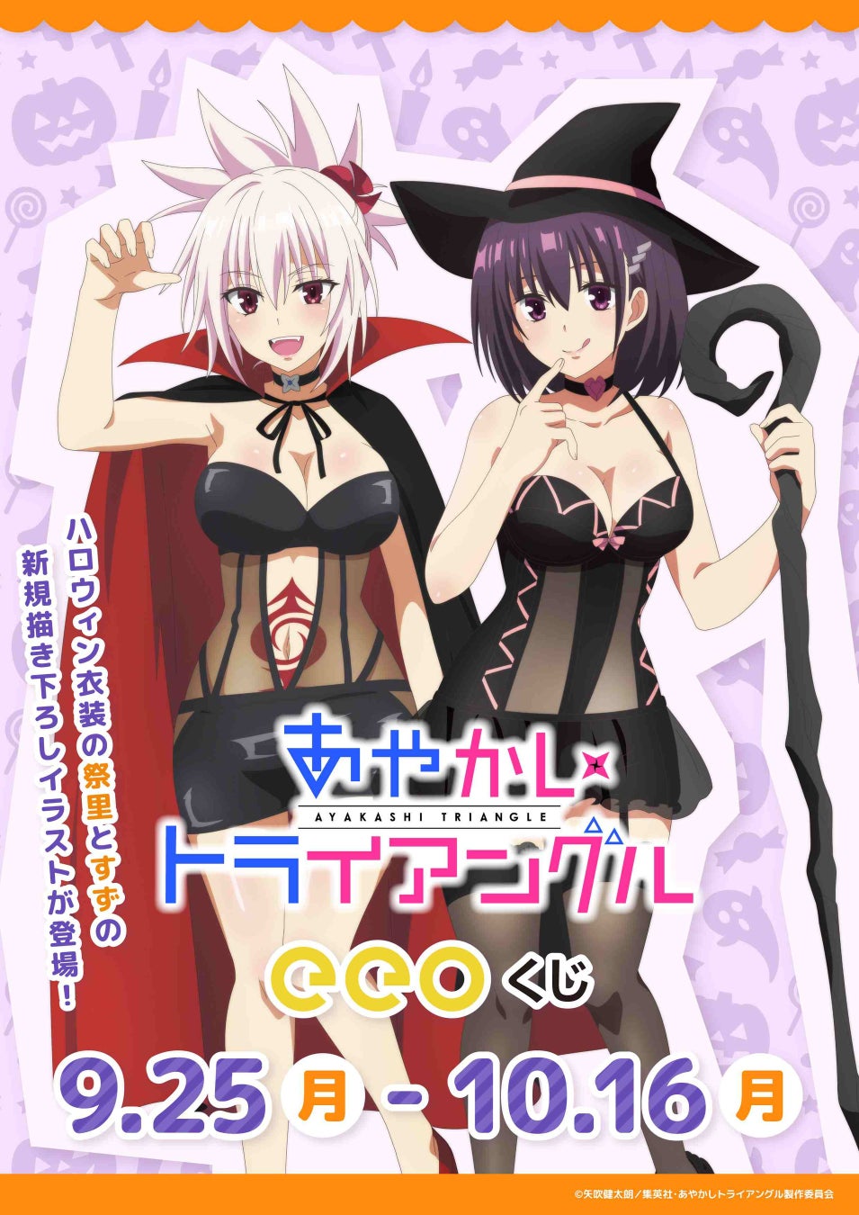 ぜひTVアニメ『あやかしトライアングル』の「eeoくじ」でハロウィンの時期にぴったりな景品を手に入れて、ワクワク感を味わってください。