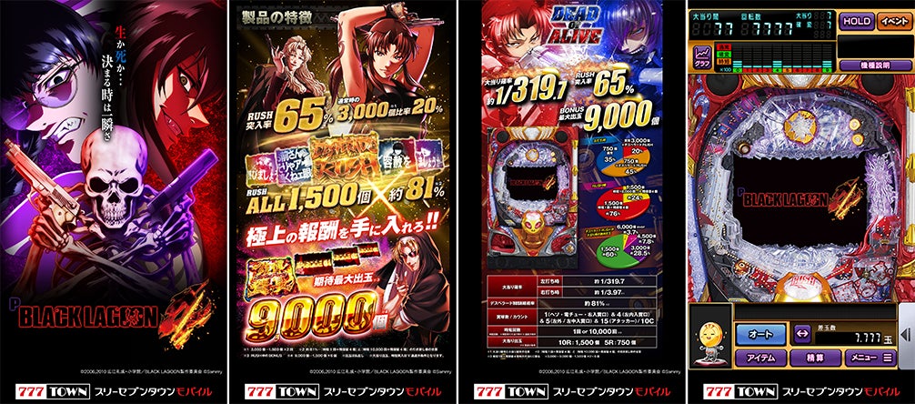 株式会社サミーネットワークスが運営するスマートフォン向けのぱちんこ・パチスロゲーム「777TOWN mobile」は、2023年9月26日(火)からサミー株式会社の「Pブラックラグーン4」アプリを提供します。