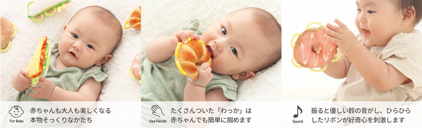 本物そっくりなパンモチーフのベビー向け知育玩具「わっかラトル」が登場!