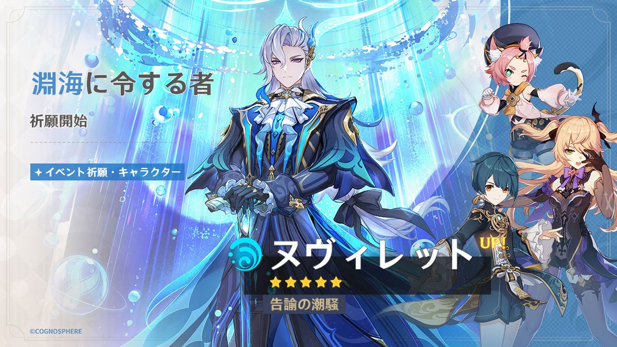 このバージョンでは、新たな★5キャラクター「ヌヴィレット(水)」の登場やフォンテーヌ地域の新エリア開放などがあります。