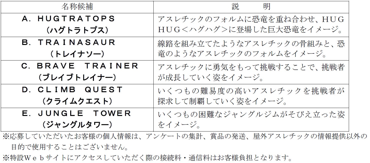 また、屋外アスレチックタワーの名称投票キャンペーンも実施され、投票に参加いただいた方には豪華な賞品がプレゼントされます。