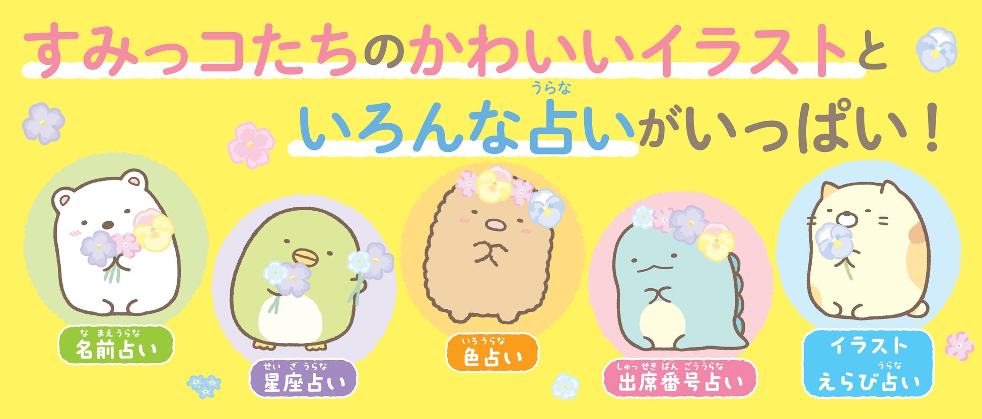 - 『すみっコぐらし』キャラクターが登場し、オリジナルと定番の占いが楽しめる