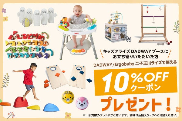 DADWAYブースでは、ベビー向けとキッズ向けの遊び場を用意し、新商品や人気アイテムをお試しいただけます。