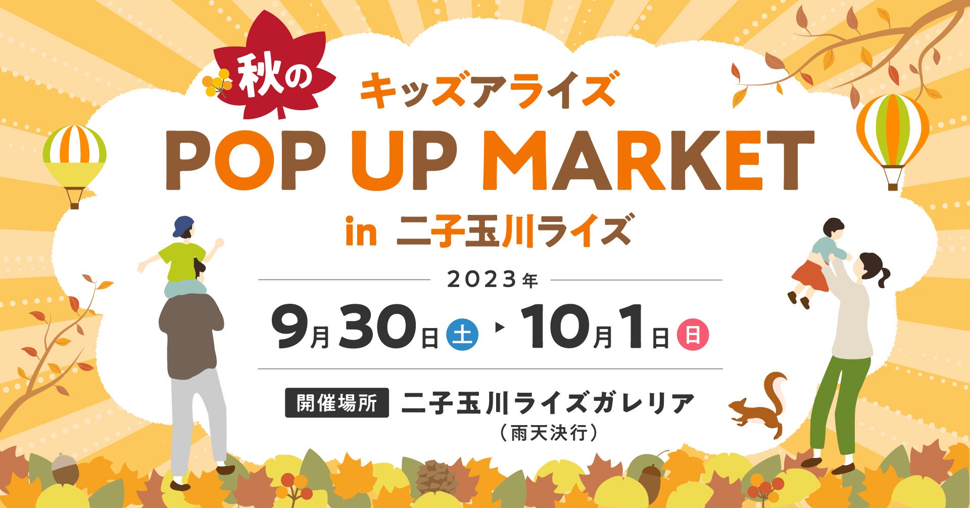 株式会社ダッドウェイは、2023年9月30日(土)・10月1日(日)に二子玉川ライズ ガレリアで開催される「キッズアライズ 秋のPOP UP MARKET in 二子玉川ライズ」に出展します。