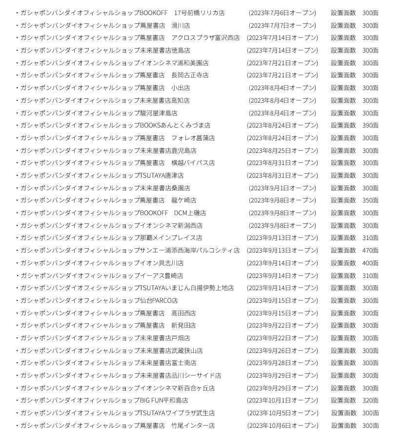 2023年10月6日、株式会社バンダイナムコアミューズメントは新潟県新潟市東区に「ガシャポンバンダイオフィシャルショップ」をオープンします。