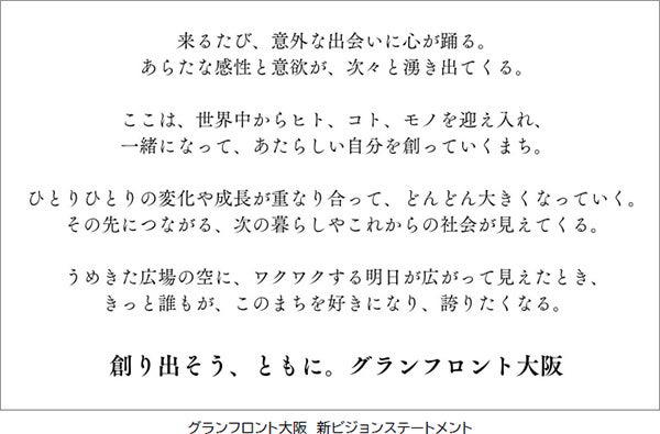グランフロント大阪は、まち全体を遊び場として捉え、来街者に感動体験を提供することを目指しています。