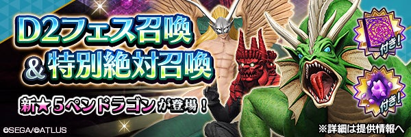 さらに、新★5悪魔「龍王 ペンドラゴン」が登場する「D2フェス召喚&特別絶対召喚」も開催されます。