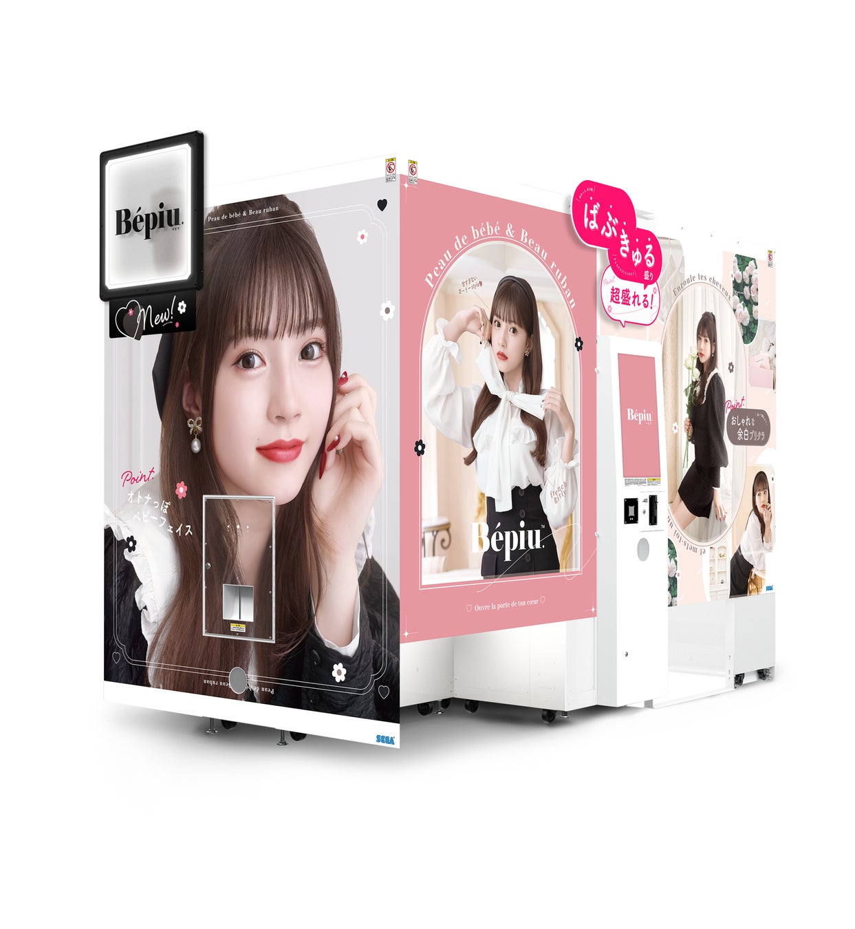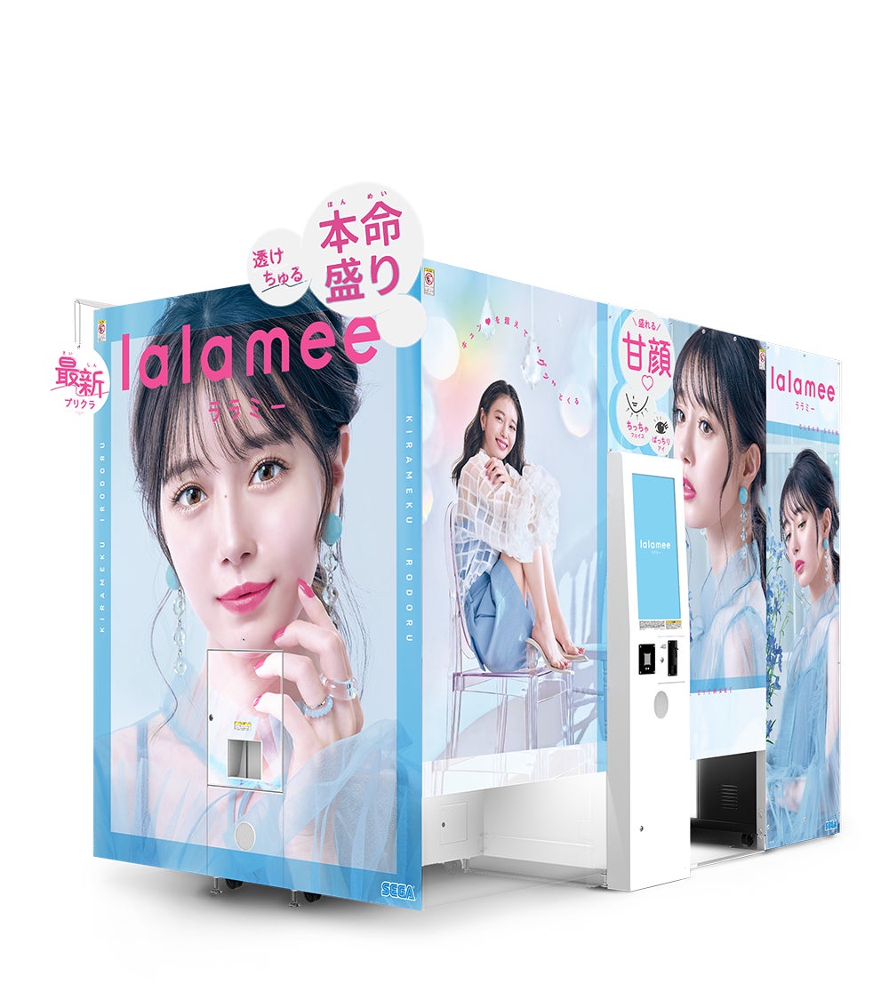 「透けちゅる本命盛り」にこだわった写りが特徴です。ご好評いただいている、盛れる3秒動画「モーメント」に新機能「動くエフェクト」を採用し、より華やかな「モーメント」をお楽しみいただけます。さらに、自然に透明感がアップする“色素薄くボタン”、ちゅるんな瞳を叶える“アイカラー”、ワンタッチで輪郭が補正できる“アゴシュッ機能”を新搭載し、 誰もがハマる“本命盛り”で理想の甘顔になることができます。セガプリクラシリーズならではの動くスタンプは、トレンドの淡色系とポップ系を追加しています。豊富なプリクラ背景と、シールデザインの組み合わせをご用意し、プリクラをもっと可愛くオシャレに楽しみたいという声に応える機種となっております。