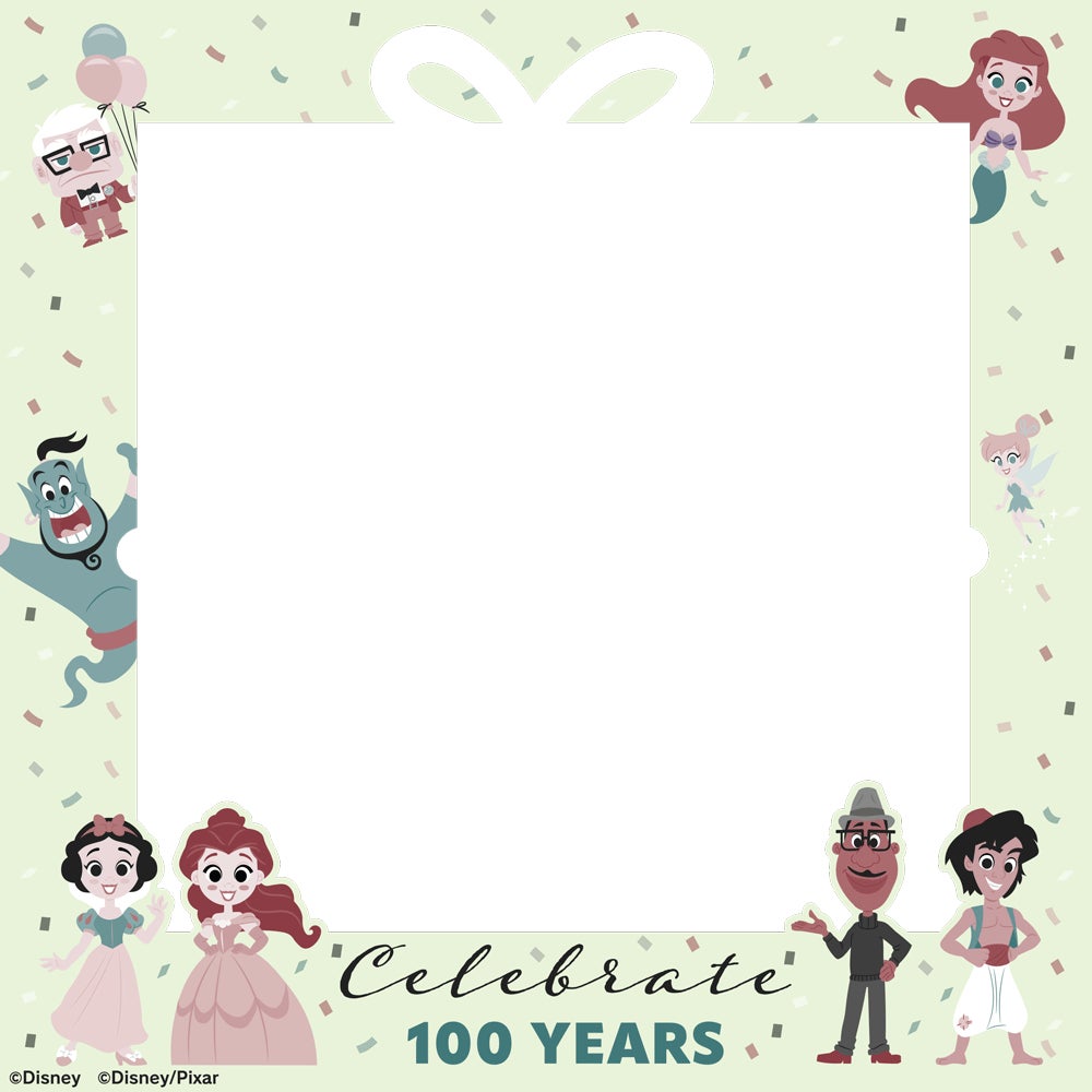 コラボ内容:『ディズニー100』の特別デザインフレームを撮影後に付けることができます。