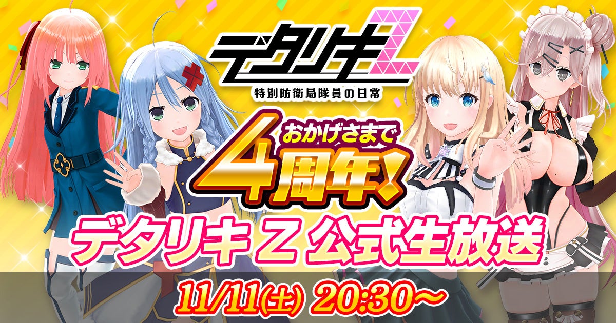 この生放送では、人気の3DRPG『デタリキZ 特別防衛局隊員の日常』の4周年記念イベントや最新情報の発表、声優によるアテレココーナー、デタリウム作品の募集など、盛りだくさんの内容が用意されています。