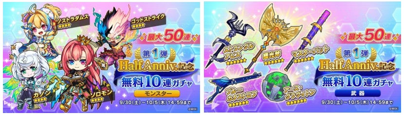 • ハーフアニバーサリーを記念して最大100連が引ける無料ガチャや新シーズンダンジョンも予定