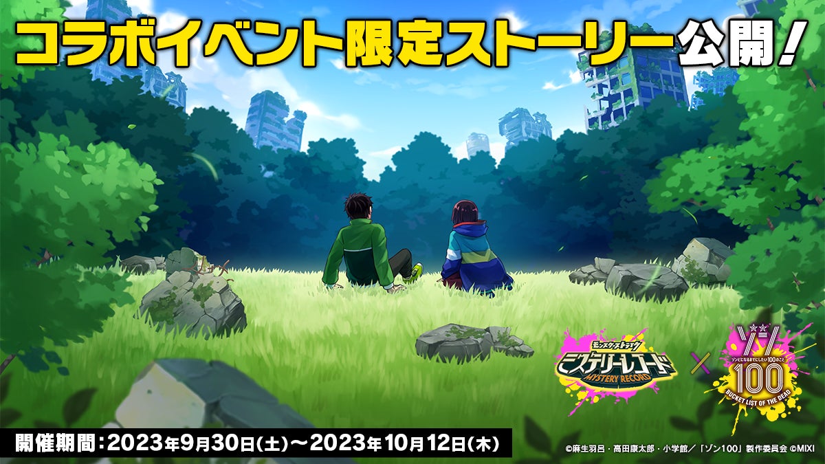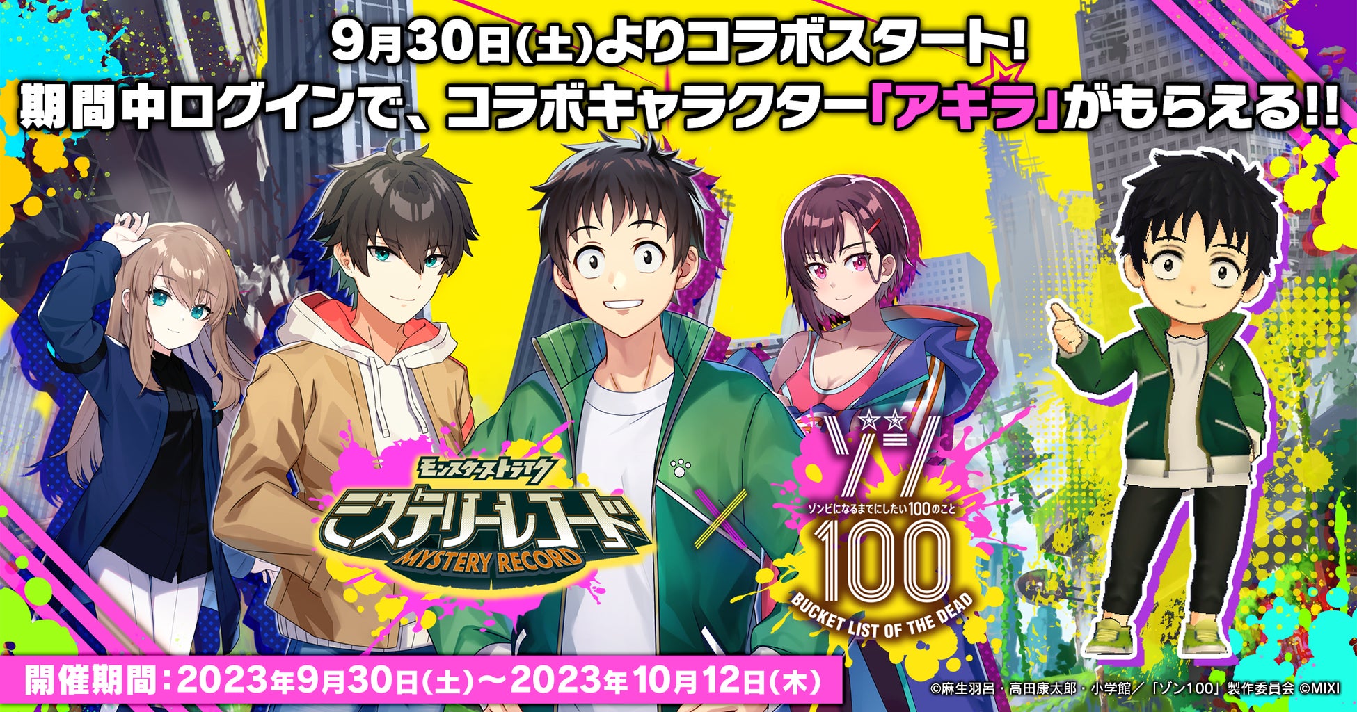 株式会社MIXIは、スマホアプリ「ミステリーレコード」とTVアニメ「ゾン100~ゾンビになるまでにしたい100のこと~」の初コラボを開催します。