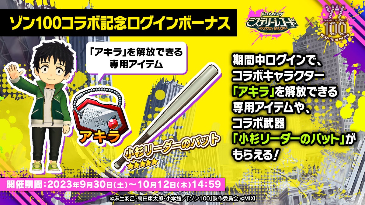 「ミステリーレコード」と「ゾン100」TVアニメの初コラボ開催!ログインで限定キャラや武器がもらえる!