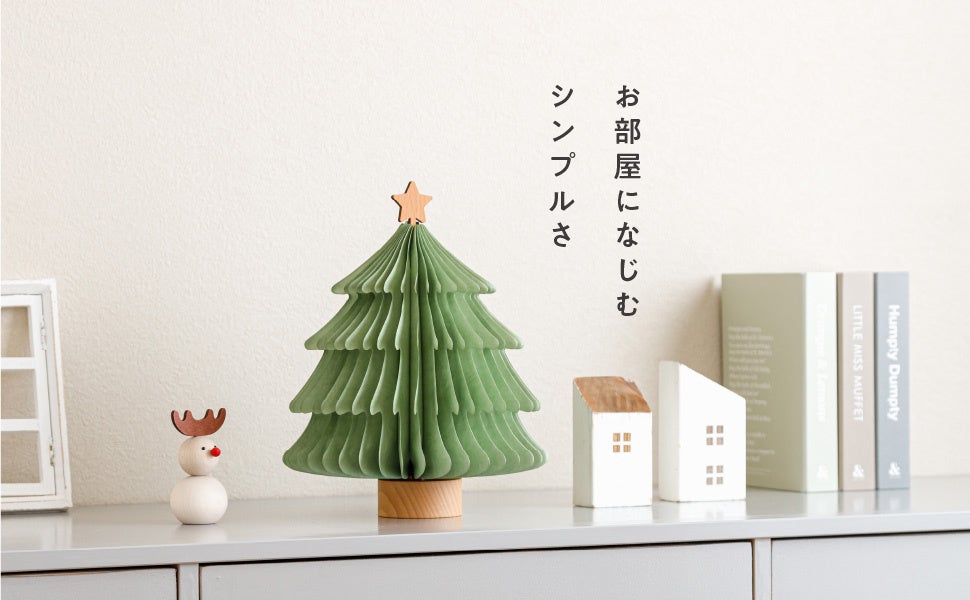 ペーパー部分を開くだけで簡単にツリーが完成し、どんな空間にも合わせやすいシンプルでモダンなデザインが特徴です。