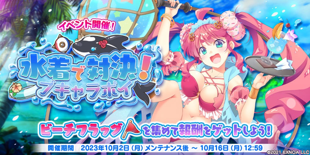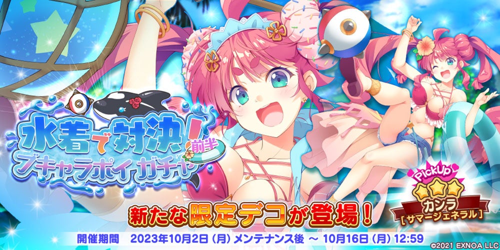 DMM GAMESが運営する『救世少女 メシアガール おかわり』では、本日10月2日(月)からストーリーイベント「水着で対決!ブキャラポイ」とピックアップガチャが開催されます。