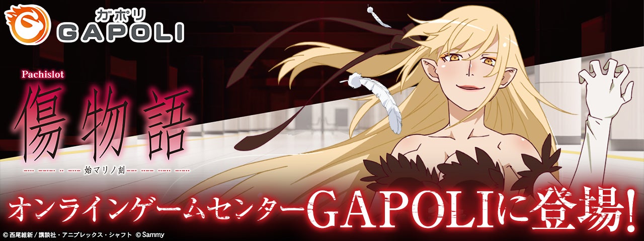 2023年10月3日(火)から、株式会社サミーの「パチスロ傷物語 -始マリノ刻-」が、株式会社サミーネットワークスが運営するオンラインゲームセンター『GAPOLI(ガポリ)』で配信されます。