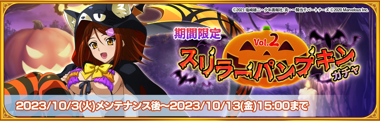 株式会社マーベラスは、人気シリーズ「一騎当千」の新作ゲームアプリ『一騎当千エクストラバースト』において、シナリオイベント「大騒動 トリックオアサキュバス!」の後半が2023年10月3日から開始されました。
