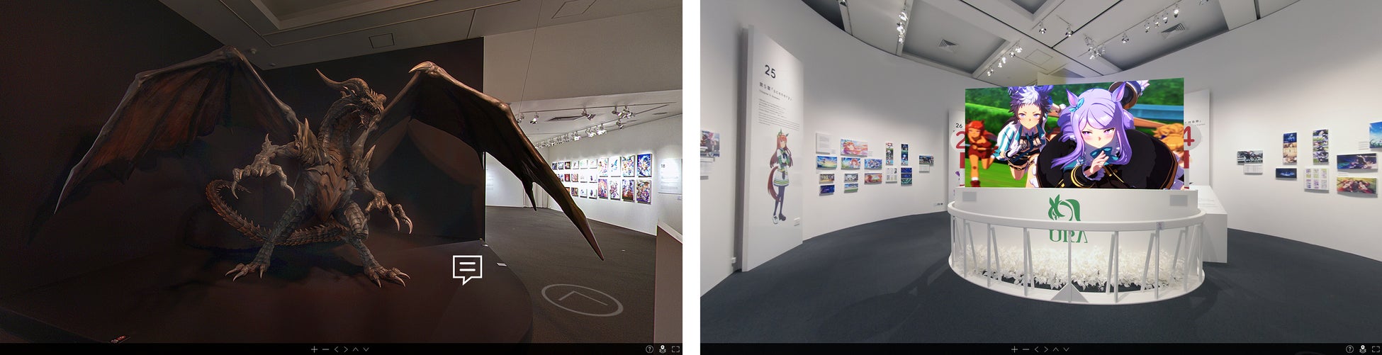 この展覧会では、ゲームのデザインやイラストなどのアートワークをVR空間で楽しむことができます。
