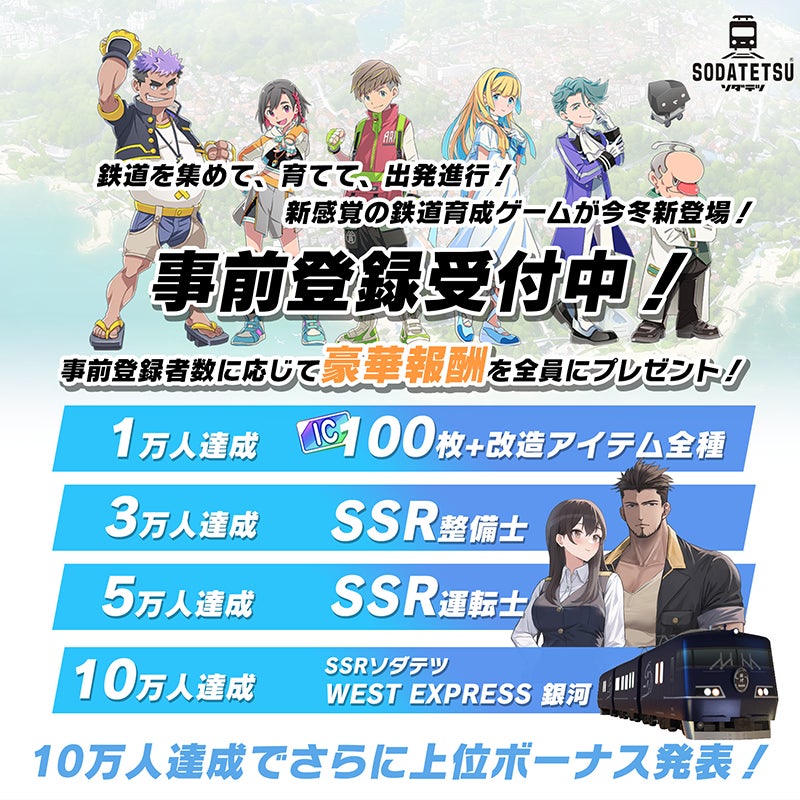 JR西日本グループの3社は、2023年冬にリリース予定の鉄道育成ゲームアプリ『SODATETSU(ソダテツ)』の制作発表と事前登録キャンペーンを開始しました。