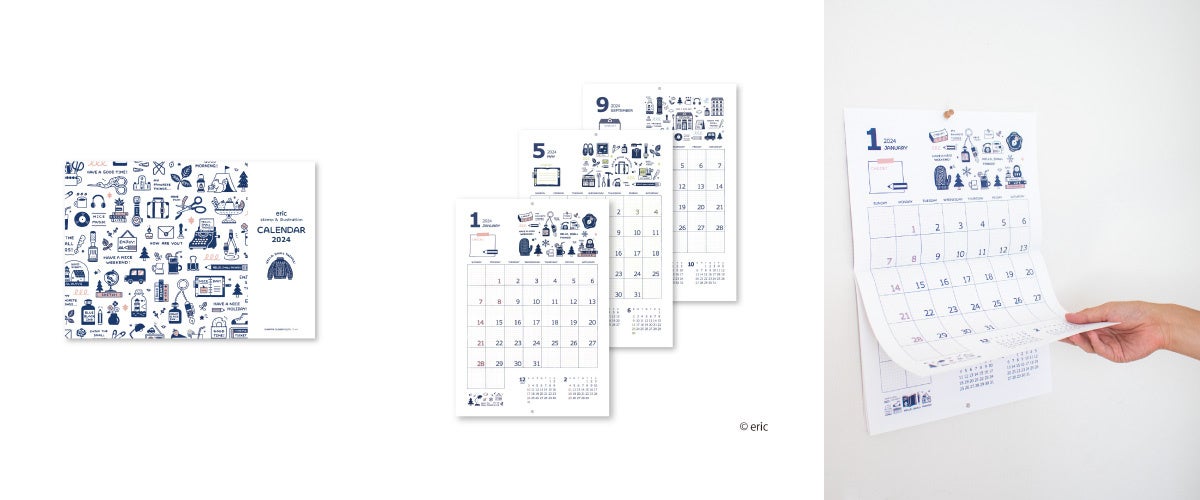 新日本カレンダーは、消しゴムはんこ作家・ericの2024年版カレンダーを発売しています。