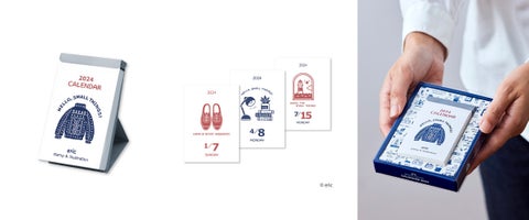 壁掛けカレンダーと卓上カレンダーは、さまざまな小物のモチーフを集めたデザインで、eric作品ならではの世界が楽しめます。
