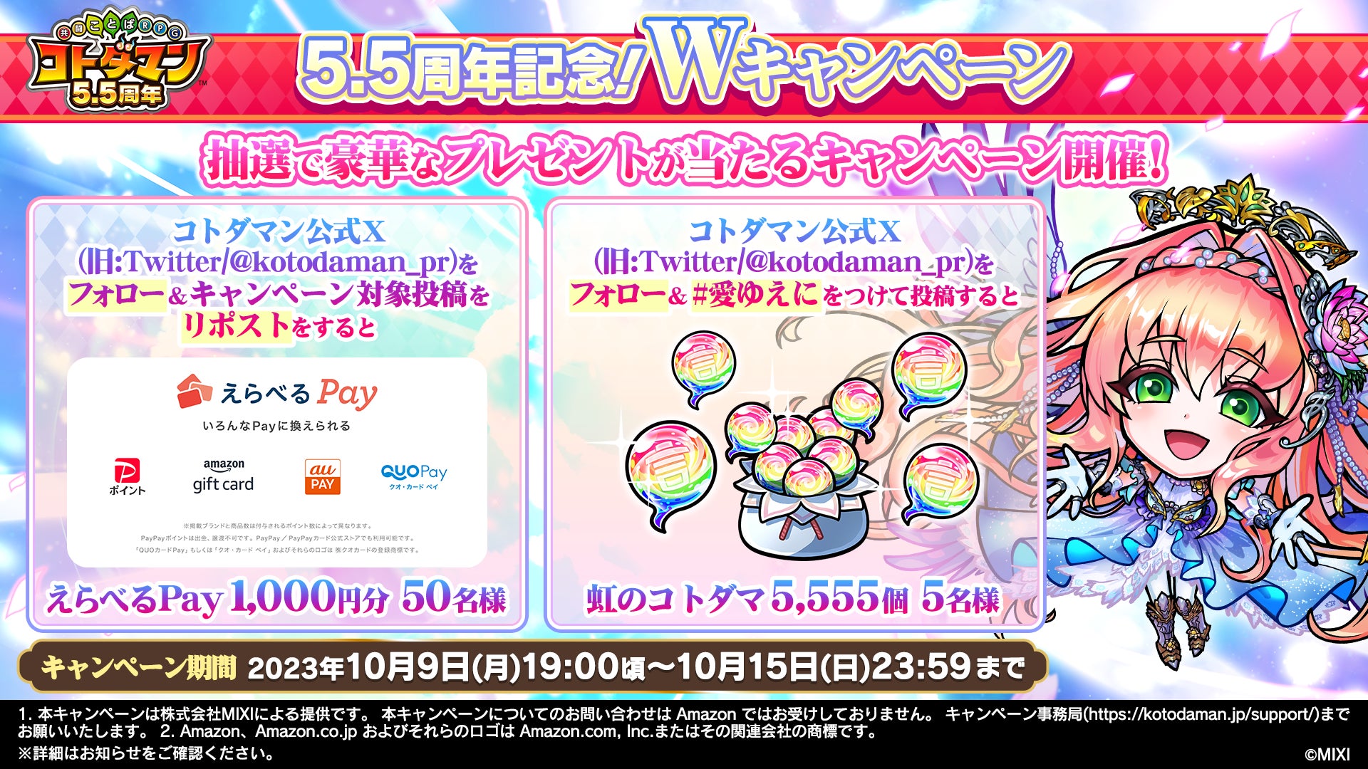 - 株式会社MIXIが「共闘ことばRPG コトダマン」の5.5周年記念イベントを開催