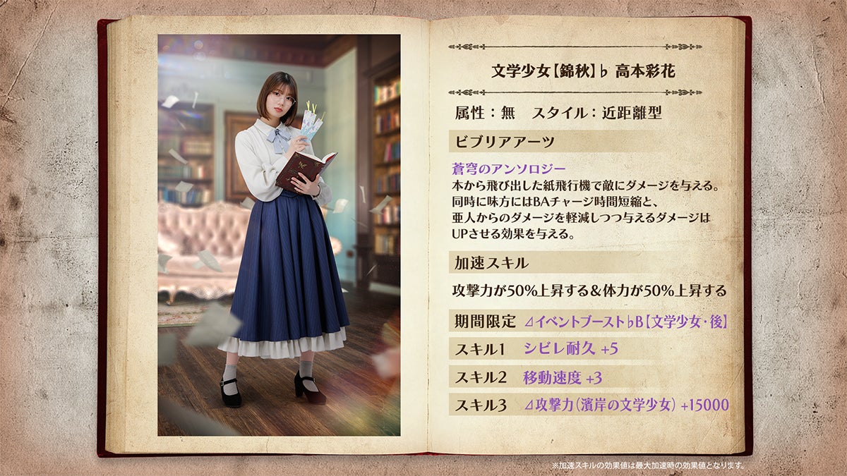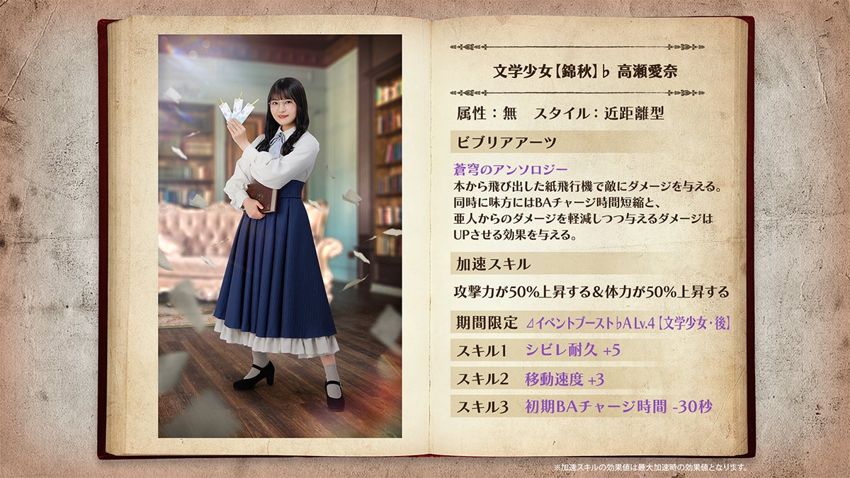 また、イベント報酬として「★4 文学少女【錦秋】♭ 高瀬愛奈」と「★4文学少女【錦秋】♭ 高本彩花」のメンバーカードが登場し、パーティ内のユニットを強化することができます。