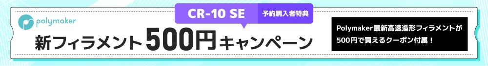 さらに、購入者特典として、Polymaker社の高速造形フィラメントが500円で購入できるクーポンが封入されます。