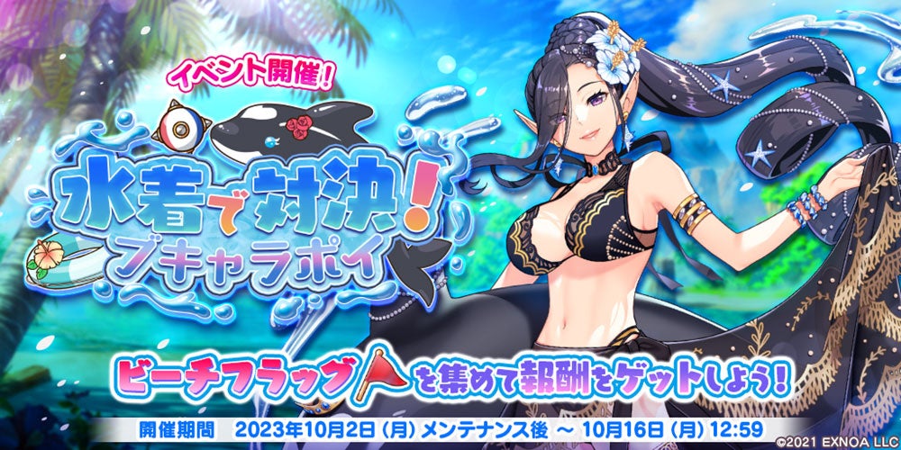 DMM GAMESの『救世少女 メシアガール おかわり』では、10月9日からストーリーイベント「水着で対決!ブキャラポイ」の後半が開催されています。