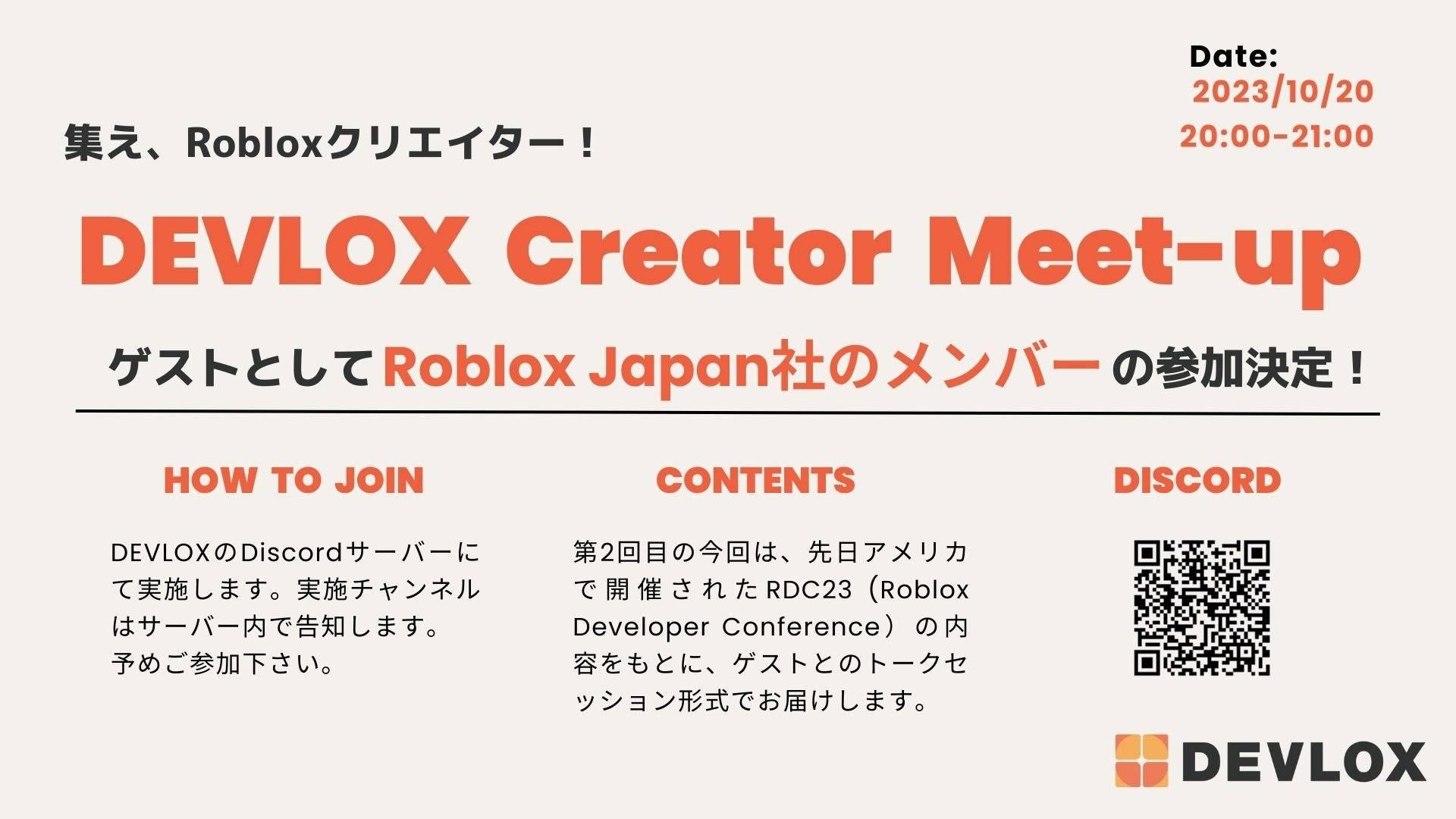 株式会社DEVLOXは、Robloxクリエイター向けの交流イベント「DEVLOX Creator Meet-up」の第2回を開催します。