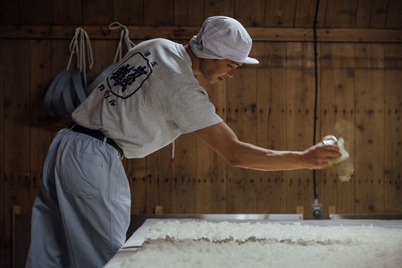 日本酒は広島県産の酒造好適米を使用し、約15年かけて醸造された大吟醸酒で、華やかな香りと軽快で柔らかな味わいが特徴です。