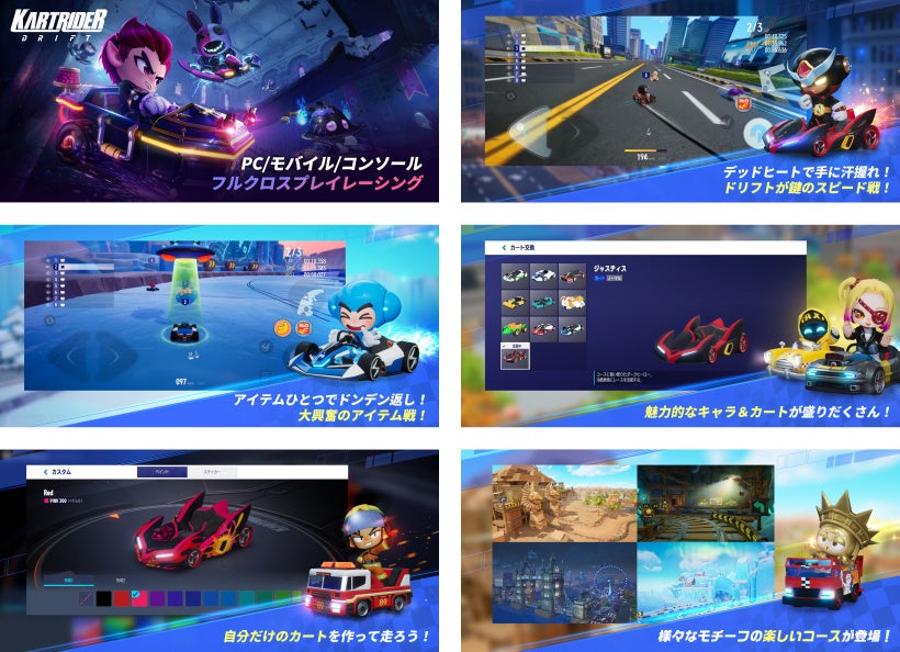 『カートライダー ドリフト』は、ネクソンの大人気レーシングゲーム『カートライダー』の正式な後継作で、PC、家庭用ゲーム機、モバイルデバイスに対応しています。
