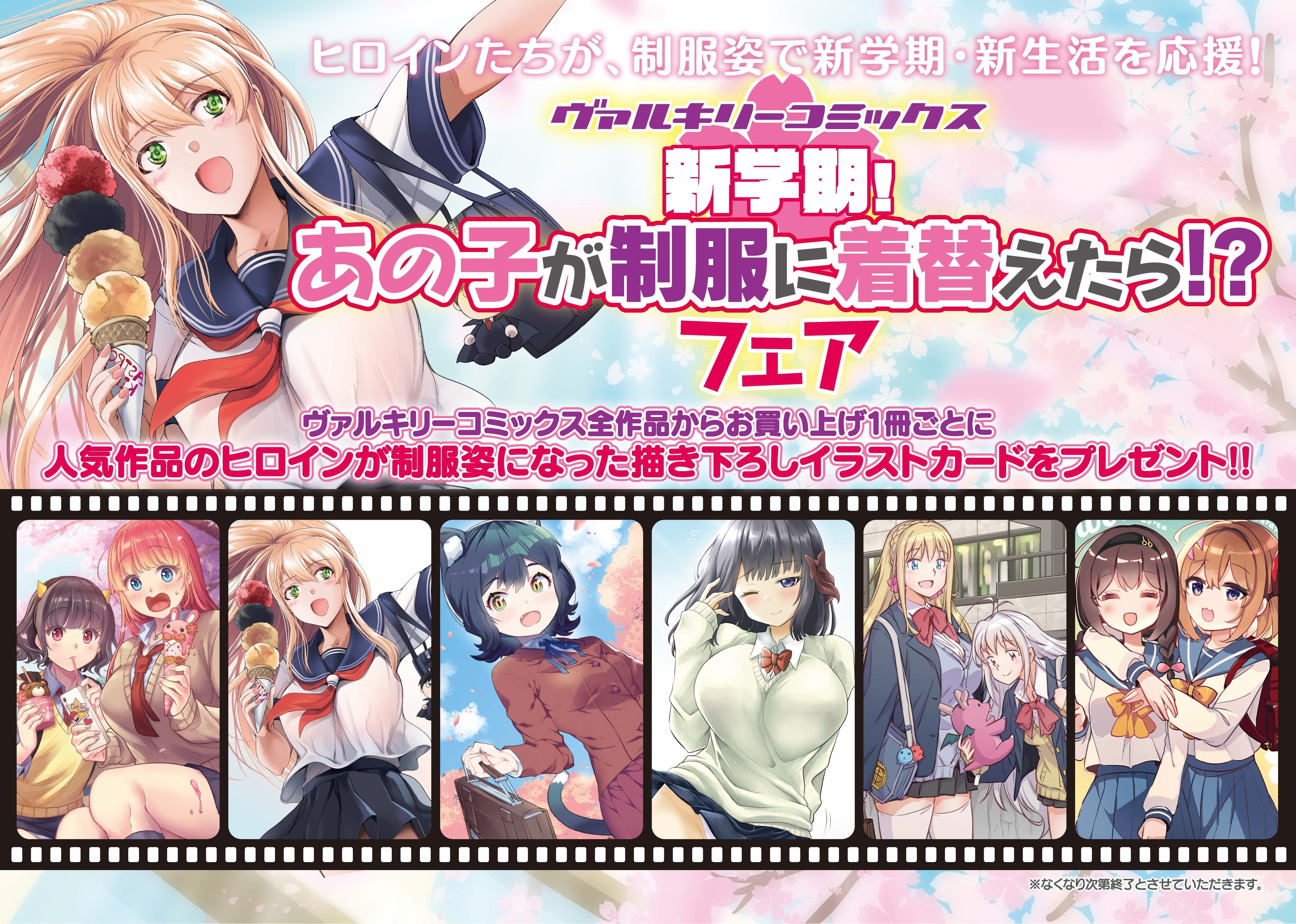 - ヴァルキリーコミックスが「新学期!あの子が制服に着替えたら!?フェア」を開催する。