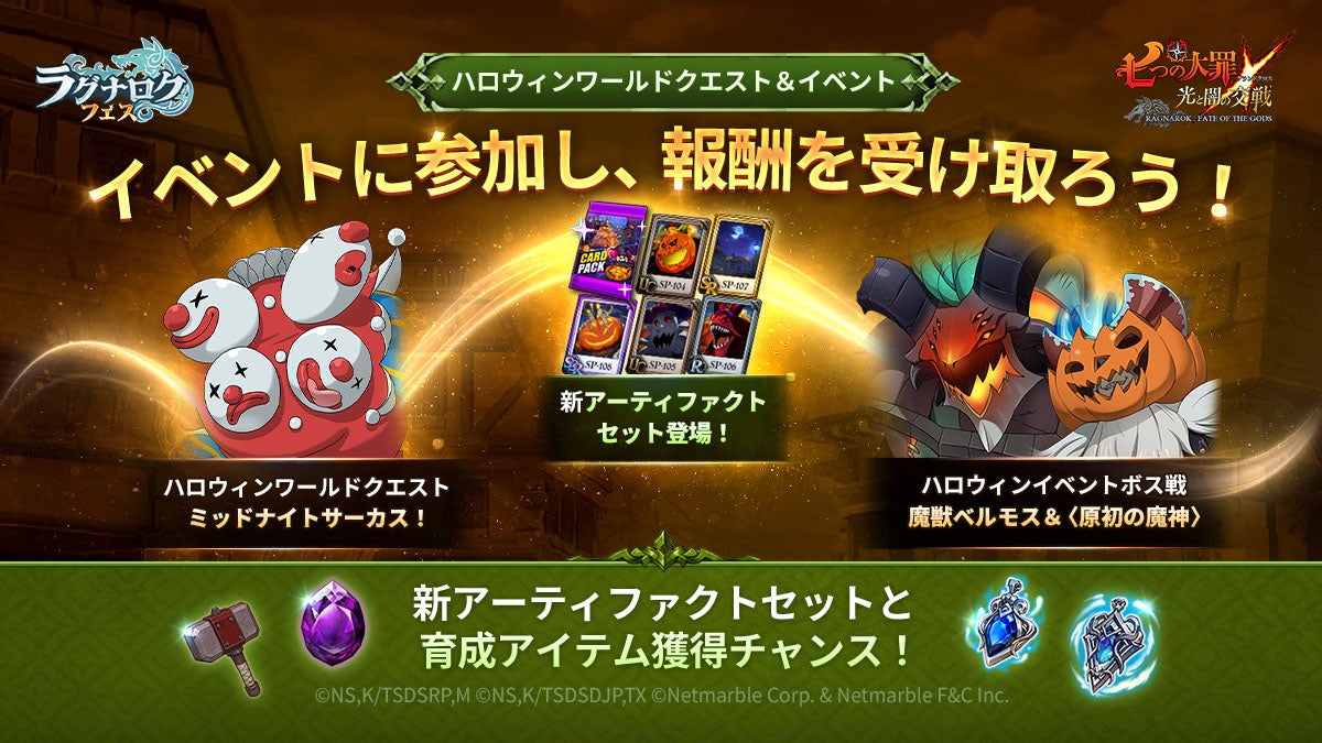 ネットマーブルは、スマートフォン向けのシネマティックアドベンチャーRPG『七つの大罪 ~光と闇の交戦~』にて、10月12日(木)からハロウィンをテーマにした多くのイベントを開催します。